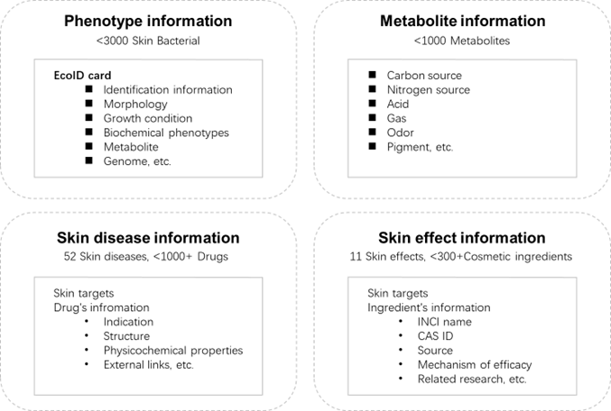 ➢ Skin efficacy and cosmetic ingredient information: Retrieved through PubMed searches using the keywords "skin effect" + "cosmetic ingredients" + "microorganisms", supplemented by manual curation.